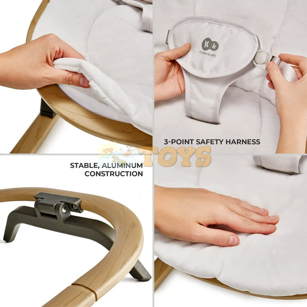 Néhány gyermek születésétől fogva nagyon nyugodt, míg mások nagyon izgágák. Az ELSU ringató-pihenőszék 3 pontos hevederekkel van felszerelve, amelyek védik a gyermeket. Szerkezetük a gyermekekhez igazodik, hogy kényelmet biztosítson pihenés közben, miközben garantálja a biztonságot. A Kinderkraft ELSU ringatója strapabíró alumínium vázzal rendelkezik, amely egyszerűen hordozhatóvá teszi. Különösen könnyű – mindössze 2,5 kg-ot nyom. Gyermeke biztonságos és kényelmes ringatóban lesz, Önnek pedig lesz egy pillanatnyi ideje.